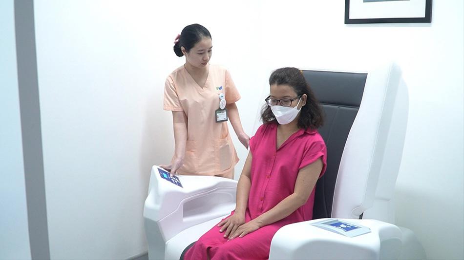 Bệnh nhân sử dụng Hệ thống QRS®-PelviCenter tại Bệnh viện FV. (Ảnh: Bệnh viện FV)
