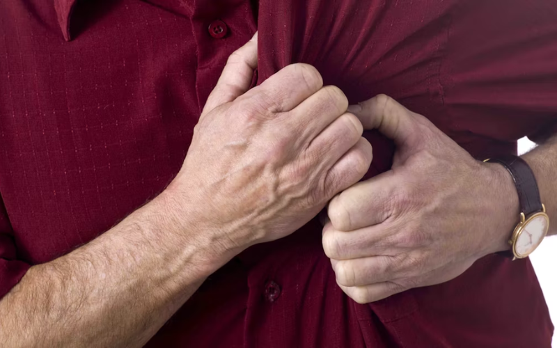 - Đau thắt ngực: Một trong những biểu hiện đặc trưng nhất, bạn sẽ có cảm giác bị bóp nghẹt, đè ép ở giữa ngực. Tiếp đó, cơn đau có thể lan xuống phần cánh tay, vai, hàm hay lưng.