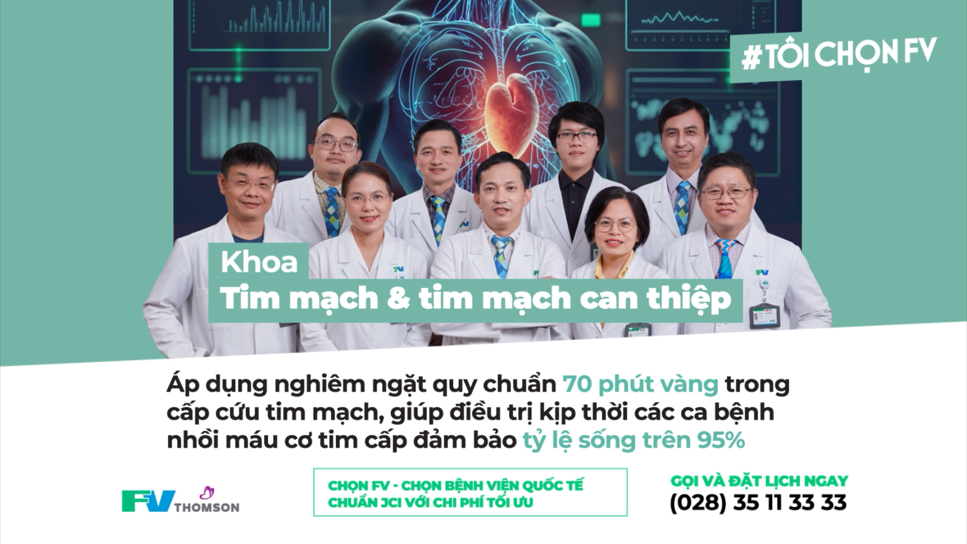 Thiếu máu cơ tim là bệnh lý vô cùng nguy hiểm, cần có biện pháp điều trị kịp thời để ngăn chặn các biến chứng nghiêm trọng khác. Việc lựa chọn một cơ sở uy tín, với đội ngũ bác sĩ chuyên môn cao hùng hậu và các trang thiết bị hiện đại là điều cần thiết để kiểm soát bệnh tốt nhất. Bệnh viện FV là địa chỉ uy tín trong điều trị các bệnh tim mạch, chăm sóc bệnh nhân toàn diện: