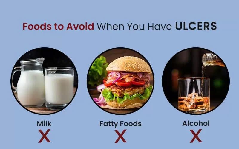 Khi vết loét đang hoạt động, một số nhóm thực phẩm cần giảm lượng tiêu thụ hoặc lựa chọn cách chế biến phù hợp như: