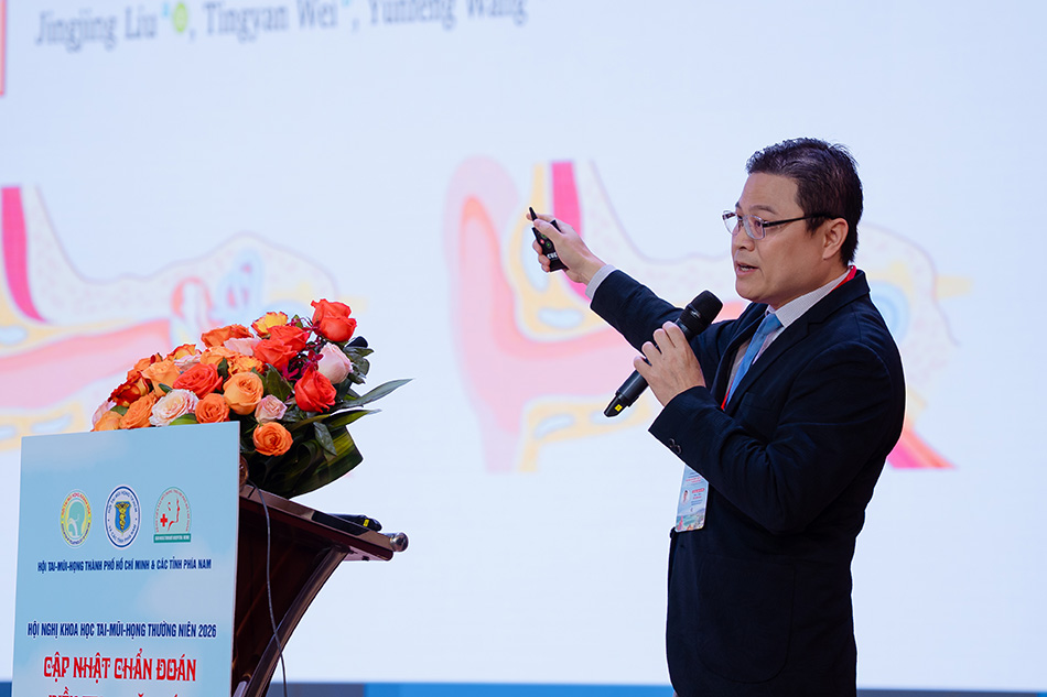 Tiếp nối tinh thần chú trọng nghiên cứu chuyên môn và ứng dụng kỹ thuật cao, Bệnh viện FV đã đóng góp một dấu ấn quan trọng tại hội nghị năm nay. Tiến sĩ, Bác sĩ Võ Công Minh – Trưởng khoa Tai Mũi Họng FV đã tham gia với vai trò kép: vừa là Chủ tọa điều phối phiên thảo luận, vừa là Báo cáo viên với đề tài mang tính thời sự: “Nong vòi nhĩ bằng bóng điều trị tắc vòi nhĩ tái phát”.