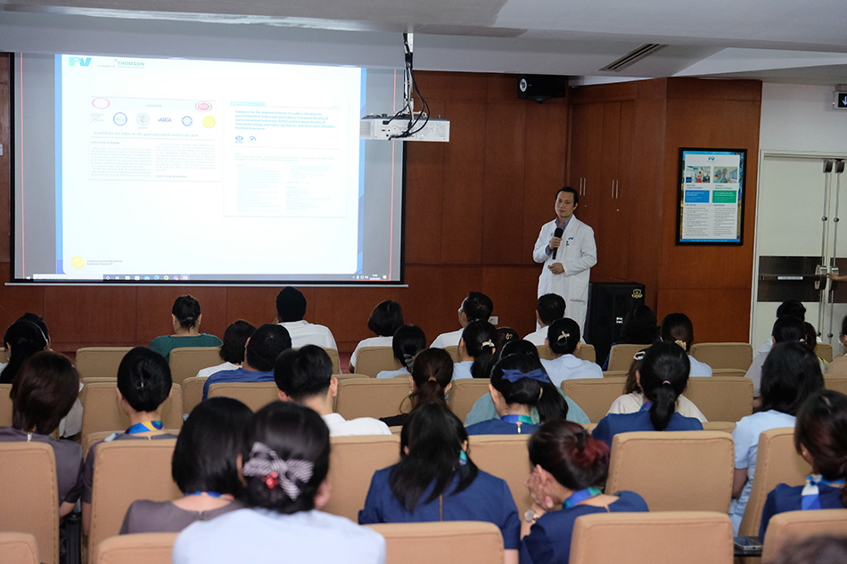 Trong khi đó, BS. Ngô Văn Huy, Phó Trưởng khoa Tiêu hóa & Gan mật, đã kết thúc buổi đào tạo với bài thuyết trình về “An toàn chẩn đoán trong các thủ thuật tiêu hóa”. Với sự thấm nhuần hơn 20 năm trong văn hóa an toàn tại FV, BS.Huy đã đưa ra những phương pháp và quy trình để giảm thiểu rủi ro trong các thủ thuật này.