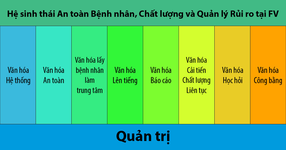 Trong khung ERM tích hợp, FV đã xây dựng hệ thống Risk Domains – nhóm các loại rủi ro theo danh mục quản lý cụ thể, với trách nhiệm được phân định trực tiếp cho từng cấp quản lý. Các chỉ số rủi ro chính (Key Risk Indicators – KRIs) được sử dụng để đánh giá hiệu suất và đề xuất hành động cải tiến. Đặc biệt, FV đã áp dụng hệ thống báo cáo sự cố dựa trên nguyên tắc “Không trừng phạt” và “Văn hóa công bằng”, khuyến khích nhân viên chủ động báo cáo, tham gia cải tiến chất lượng và giảm thiểu rủi ro trên toàn bệnh viện.