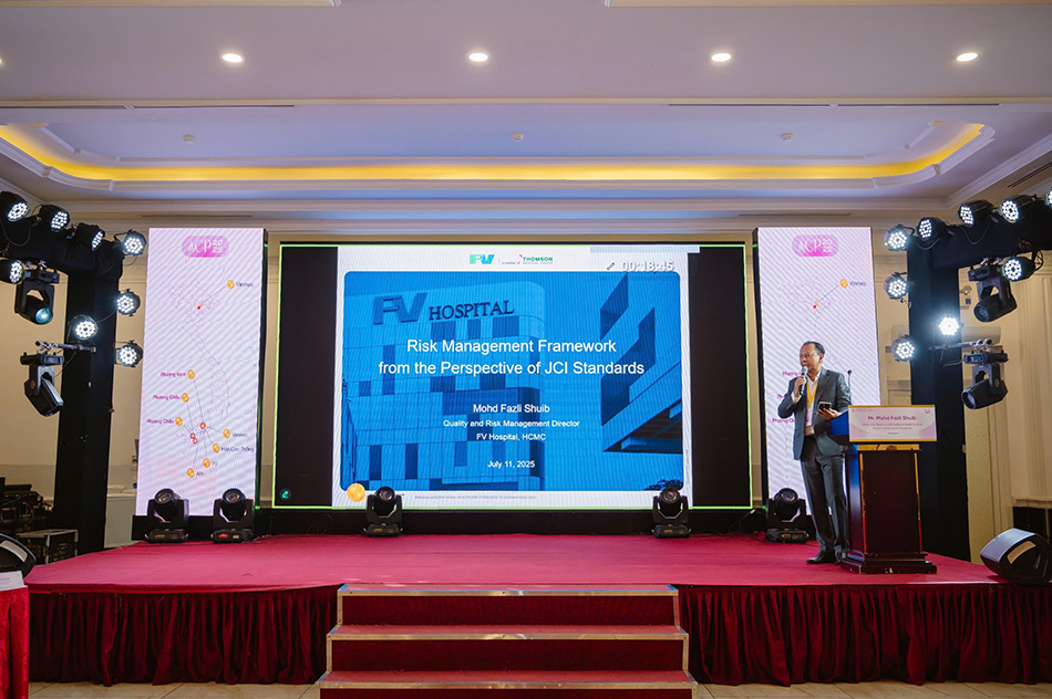 Tại Hội nghị khoa học ACP 2025, Bệnh viện FV đã chia sẻ kinh nghiệm triển khai hệ thống quản lý rủi ro doanh nghiệp (ERM) dựa trên tiêu chuẩn JCI. Với vai trò tiên phong trong cải tiến chất lượng bệnh viện, FV khẳng định cam kết đóng góp vào sự phát triển chung của ngành y tế Việt Nam.