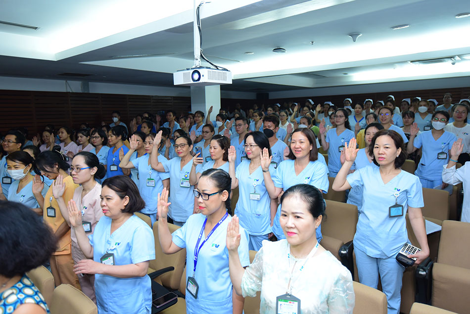 Năm nay, Điều dưỡng Trưởng ICU – anh Đỗ Chí Tâm và tập thể điều dưỡng đã cùng tuyên thệ “Lời cam kết từ điều dưỡng”. Mỗi năm, kim chỉ nam này đã trở thành những lời nhắc nhở quan trọng cho tập thể điều dưỡng tại FV, giúp các anh chị luôn hướng đến những lợi ích của bệnh nhân và định hướng cho sự nghiệp của mình.