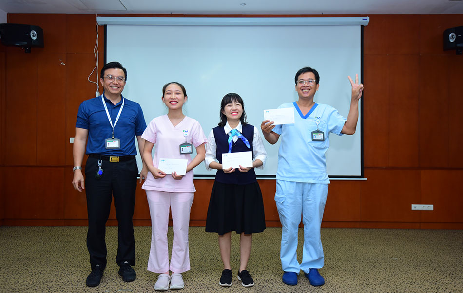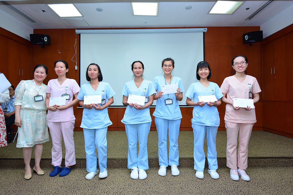 Trong phần tiếp theo của sự kiện, một cuộc tranh tài hấp dẫn đã diễn ra giữa các nhóm điều dưỡng, thuộc nhiều khoa khác nhau. Với phần thuyết trình rõ ràng và đầy ấn tượng với chủ đề “Ý nghĩa khi trở thành một điều dưỡng”, nhóm điều dưỡng đại diện cho Khoa Ngoại và Khoa Cấp cứu đã xuất sắc dành vị trí quán quân cuộc thi. Vị trí thứ hai thuộc về nhóm Phòng khám Ngoại trú & Phòng khám Đa khoa FV Sài Gòn; và thứ ba là Sản Phụ Khoa và Khoa Nhi. Bên cạnh đó, phần trình bày bằng tiếng Anh từ Phòng Săn sóc Đặc biệt và Phòng Mổ, cũng được Ban Giám khảo đánh giá cao.