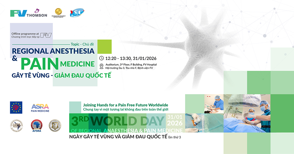Bệnh viện FV trân trọng kính mời Quý Bác sĩ và Nhân viên quan tâm đăng ký tham dự, cùng chia sẻ kinh nghiệm, cập nhật thực hành gây tê vùng và quản lý đau nhằm tối ưu kết quả điều trị và chăm sóc người bệnh.