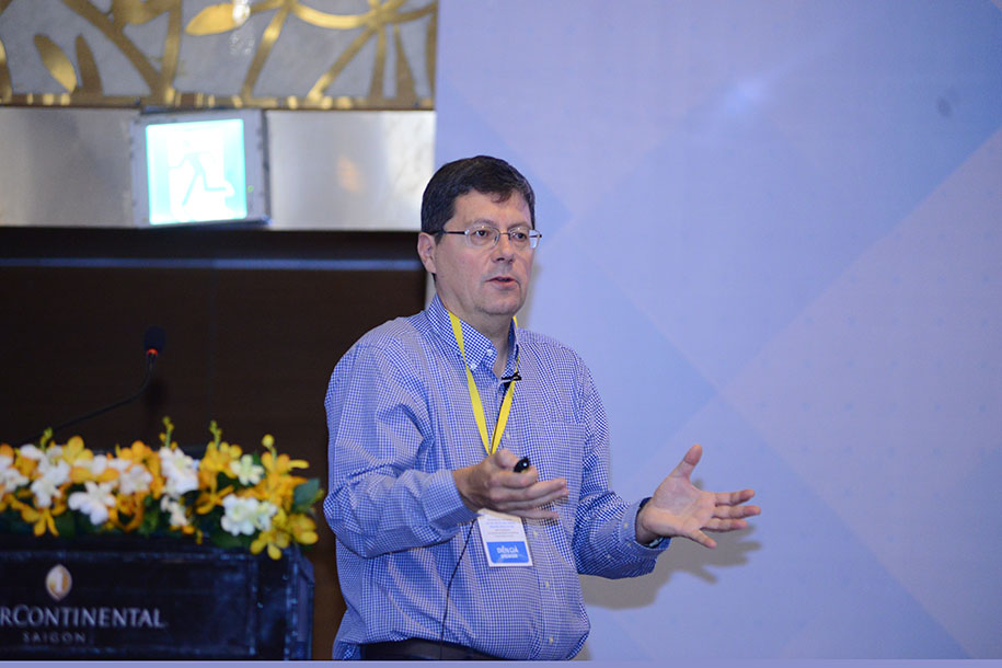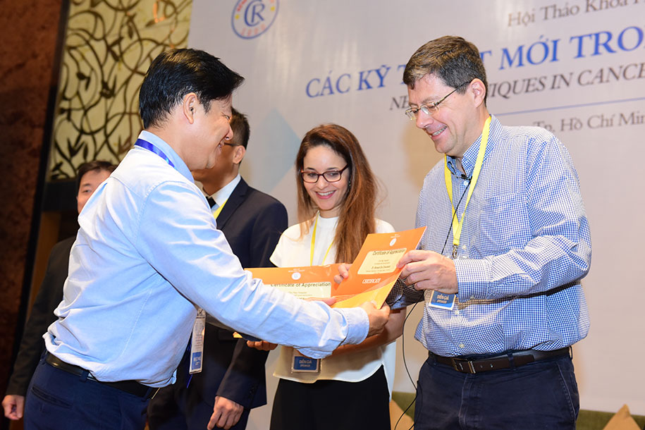 Giáo sư Bác sĩ Renaud de Crevosier – Trưởng khoa Xạ Trị, Trung tâm Ung Bướu Eugene Marquis, Pháp trình bày về đề tài “Xạ trị bằng hình ảnh (IGRT) đến xạ trị thích ứng (ART)”