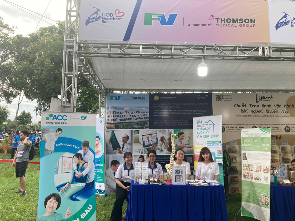 Trong sự kiện này, Phòng khám ACC – một thành viên thuộc Bệnh viện FV, đơn vị rất thân quen với các vận động viên các giải chạy bộ, cũng đã hỗ trợ nhiệt tình tại UOB Heartbeat Vietnam 2024. Ngoài hoạt động chăm sóc thể trạng cho các vân động viên, FV và ACC đã nhận được sự quan tâm của nhiều vận động viên về các chương trình tiêm chủng, khám sức khỏe tổng quát, hay chương trình Hội viên FV, cũng như nhiều lượt tư vấn về chăm sóc và điều trị thần kinh cột sống.
