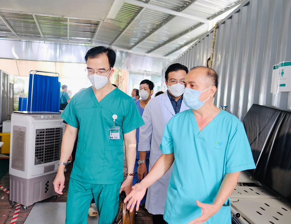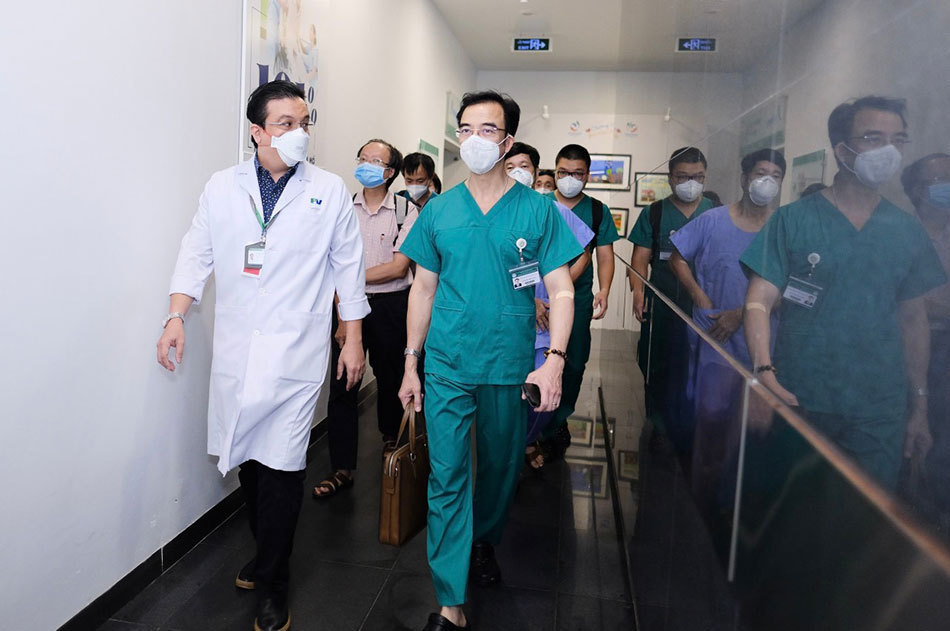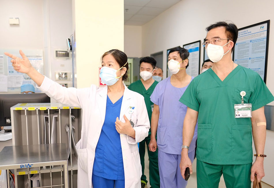 Tại buổi làm việc, Trưởng đoàn – GS.TS. Nguyễn Quang Tuấn (Giám đốc Bệnh viện Bạch Mai, Giám đốc Trung tâm HSTCNB COVID-19) cùng đoàn công tác thuộc Bệnh viện Bạch Mai đã có buổi khảo sát toàn bộ các khu vực tiếp nhận và điều trị bệnh nhân COVID-19, đang được vận hành tại Bệnh viện FV. Theo đó, đoàn đánh giá cao những nỗ lực về tổ chức nhân sự và nâng cấp cơ sở vật chất của Bệnh viện FV trong công tác phục vụ điều trị cho bệnh nhân mắc SARS-COV-2.