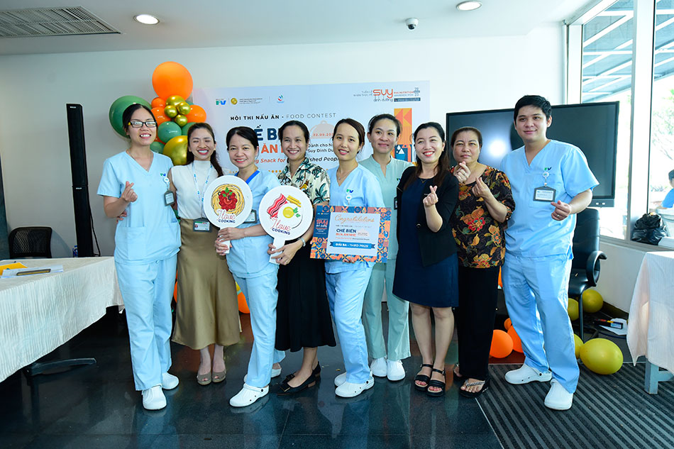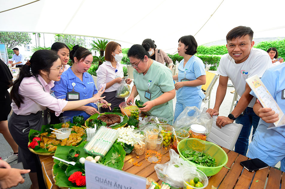 Sau cùng là cuộc thi được mong chờ nhất, Hội thi ẩm thực với chủ đề “Chế biến bữa ăn nhẹ dành cho người suy dinh dưỡng”. Dù năm nay là lần thứ 2 được tổ chức nhưng cuộc thi vẫn chứng minh được độ “hot” khi thu hút được 10 đội tham gia và sự hưởng ứng đông đảo của bệnh nhân, thân nhân và nhân viên tại FV. Các món ăn đem đến dự thi, được chế biến từ đơn giản đến công phu, với nguyên liệu được chọn lựa kĩ lưỡng và đặc biệt phải đảm bảo tiêu chí ngon và bổ dưỡng.