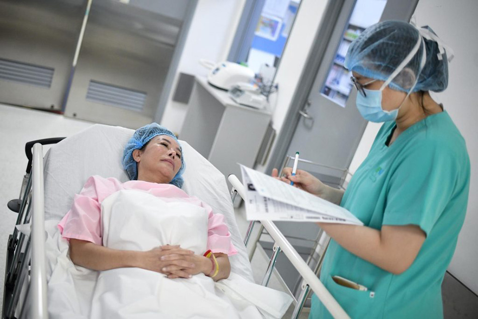 Với tỷ lệ cơ thể rất ít mỡ thừa, bác sĩ Daniel Bialeoko tư vấn cho chị Lệ Thu hút mỡ từ eo, hai bắp tay, phần bụng dưới và hai má đùi trong. Như vậy, lượng mỡ lấy ra sẽ đủ để tiêm lại vào mông, đồng thời bác sĩ Daniel vẽ thêm vài đường cơ trên bụng tạo thành một cơ thể săn chắc và quyến rũ. Sau khi nghe tư vấn và đồng ý, chị được khám tổng quát và đánh giá tiền mê. Khi chuẩn bị bước vào ca phẫu thuật, nhân viên y tế kiểm tra lại hồ sơ và ghi nhận tình hình sức khoẻ khách hàng tại thời điểm đó.