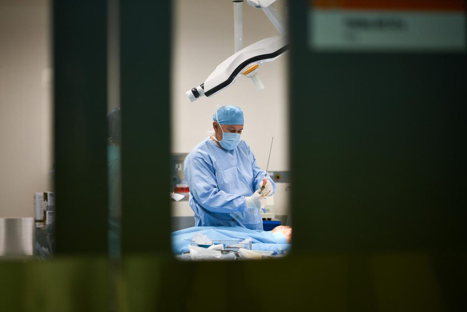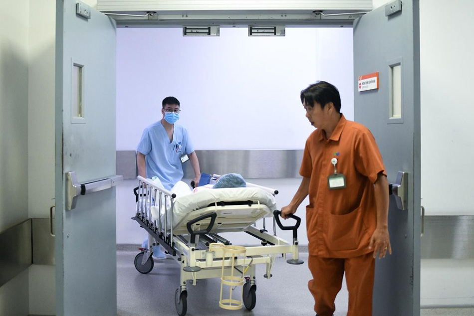 Sau khi xác nhận tình hình sức khoẻ ổn định, chị Thu được nhân viên y tế đẩy giường bệnh từ phòng đợi vào phòng mổ.