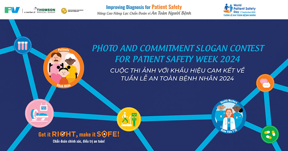 Nhằm hưởng ứng Tuần lễ An toàn Bệnh nhân diễn ra từ ngày 16 – 20/9/2024 tại bệnh viện FV, với chủ đề “Nâng cao năng lực chẩn đoán vì an toàn người bệnh”, Phòng Quản lý Chất lượng sẽ tổ chức cuộc thi chụp ảnh cùng khẩu hiệu cam kết an toàn bệnh nhân. Qua đó sẽ giúp nhân viên nâng cao nhận thức về tầm quan trọng của việc cải thiện chẩn đoán, trong quy trình khám chữa bệnh an toàn và hiệu quả.