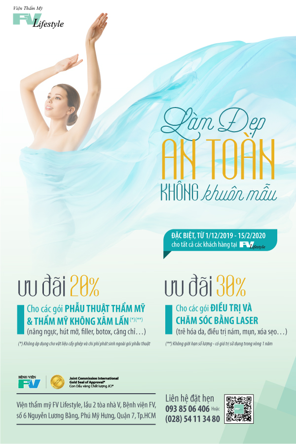 Đặc biệt, Từ 01/12/2019 – 15/02/2020, FV Lifestyle dành tặng bạn ưu đãi lên đến 30% cho các dịch vụ thẩm mỹ và làm đẹp để giúp bạn đón năm mới xinh tươi và rạng rỡ nhất có thể.