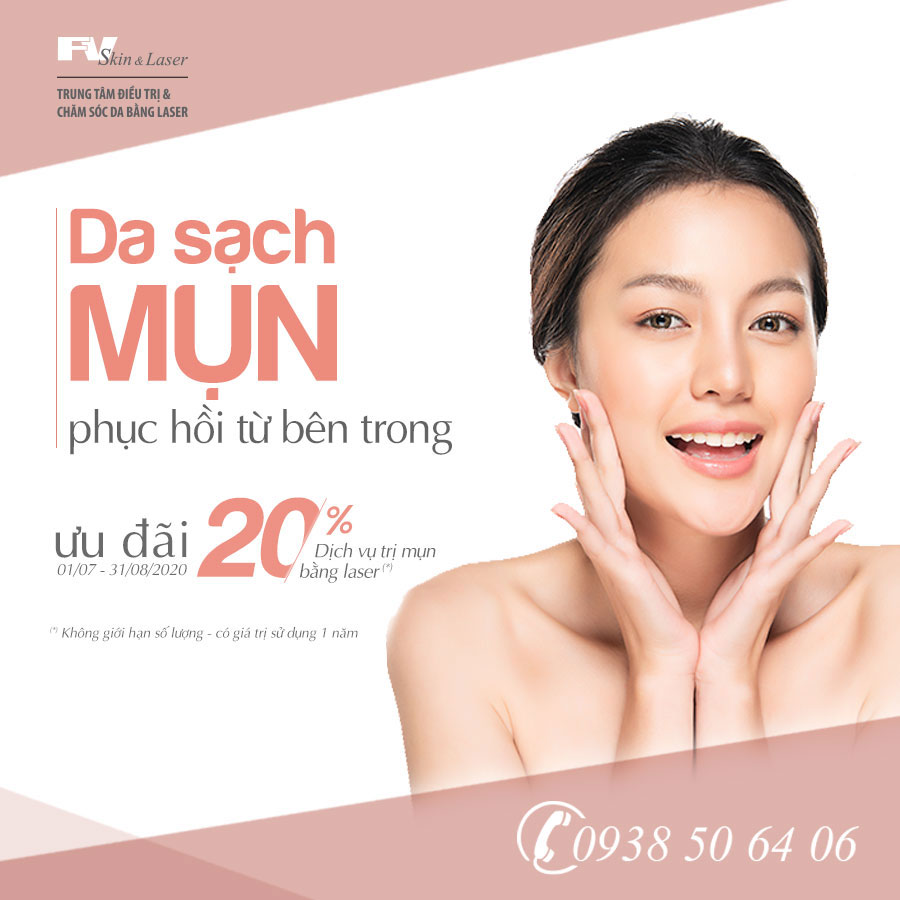 Từ 01/07 – 31/08/2020 Trung tâm Điều trị & Chăm sóc da bằng Laser FV dành tặng cho khách hàng ưu đãi đến 20% cho khách hàng sử dụng các dịch vụ chăm sóc da và laser.