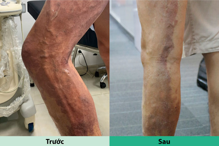 Bệnh nhân được chụp CT, siêu âm và vẽ bản đồ đánh dấu mạch máu bị tổn thương ở chân trước khi bác sĩ tiến hành thực hiện thủ thuật đốt laser nội tĩnh mạch và chích xơ. Tiến hành thủ thuật, bác sĩ Trần Minh Hoàng đã tỉ mỉ chọn lọc từng tĩnh mạch dị dạng để làm laser, tránh xâm lấn và tổn thương các mạch máu lành. Với phương pháp dùng nhiệt từ ánh sáng laser để làm xẹp tĩnh mạch, bác sĩ đã luồn sợi laser vào lòng tĩnh mạch bị giãn. Song song đó là quá trình gây tê kết hợp bơm nước xung quanh tĩnh mạch sẽ giúp giảm ảnh hưởng của tia laser lên các mô xung quanh, hạn chế làm bỏng mô cũng như tránh các biến chứng lên các dây thần kinh cảm giác. Đến phần chích xơ, bác sĩ đã tiêm thuốc gây xơ hóa vào vùng mạch máu bị tổn thương và chích nhiều lần cho đến khi không còn hiện tượng giãn tĩnh mạch nông dưới da. Sau 2 giờ thực hiện thủ thuật dưới hướng dẫn siêu âm, bệnh nhân đã giảm 90% các triệu chứng. N.T.H xuất viện sau 3 ngày và sẽ được tiếp tục điều trị duy trì bằng cách dùng thuốc và mang vớ tĩnh mạch.