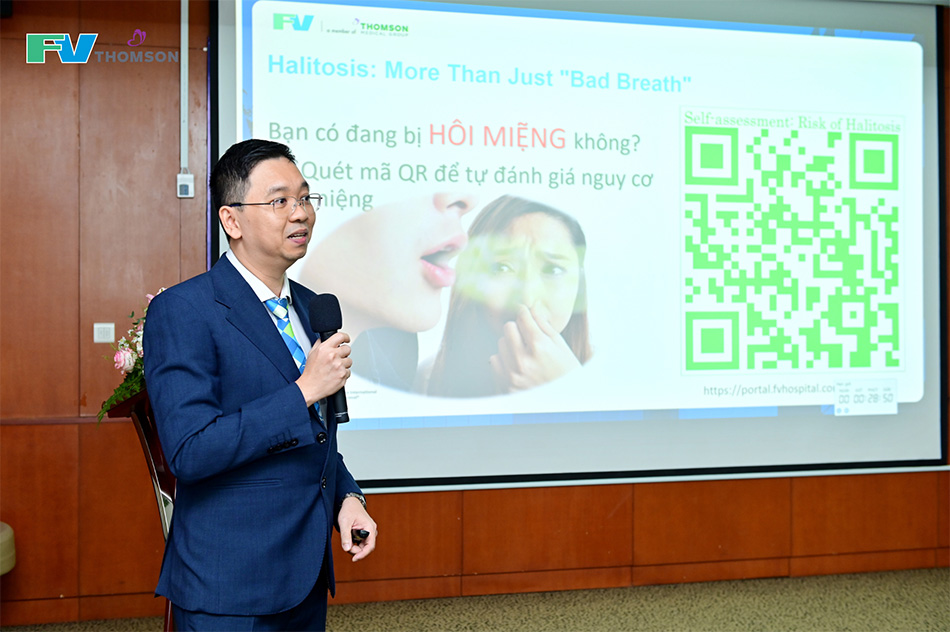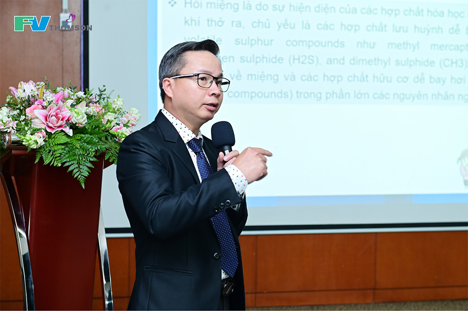 Tiếp nối là bài báo cáo của TS.BS. Võ Công Minh, Trưởng khoa Tai Mũi Họng, Bệnh viện FV, làm rõ vai trò của các bệnh lý mũi xoang, viêm amidan, trào ngược họng – thanh quản chính là những nguyên nhân ngoại khoa ít ai ngờ tới nhưng lại chiếm tỉ lệ không nhỏ trong nhóm bệnh nhân bị hôi miệng mạn tính. Bác sĩ Minh cũng chia sẻ các bước tiếp cận lâm sàng hiệu quả để xác định đúng nguyên nhân và tránh điều trị sai hướng.