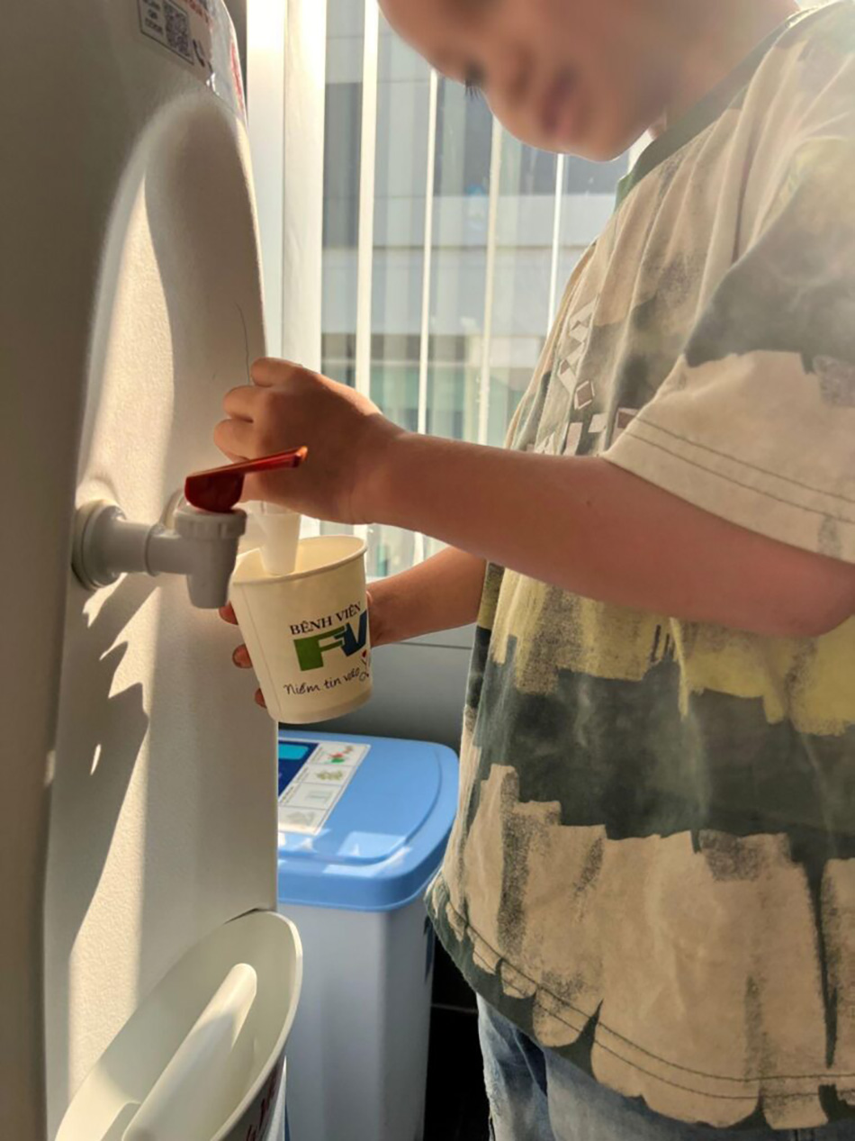 Nhìn bé Minh Đạt (7 tuổi, Quảng Nam) tự tay cầm bút vẽ, rót nước mời các bác sĩ uống, những nhân viên y tế tại bệnh viện FV không khỏi xúc động. Bởi lẽ hành trình cùng bé tìm lại đôi tay lành lặn thật không dễ dàng.