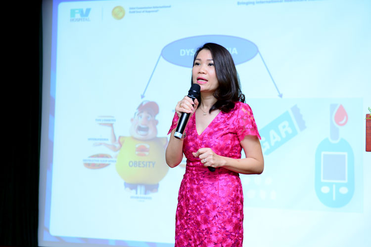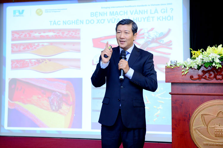 Chương trình hội thảo diễn ra sôi nổi với nhiều chủ đề bổ ích và gần gũi với thực tế về bệnh lý tim mạch: Bệnh lý mạch vành, Bệnh lý động mạch chi dưới, Dinh dưỡng trong phòng ngừa và điều trị bệnh lý mạch vành do các bác sĩ Huỳnh Ngọc Long – Trưởng khoa Tim FV, bác sĩ Lương Ngọc Trung – khoa Phẫu thuật Mạch Máu FV và bác sĩ Nguyễn Viết Quỳnh Thư – Trưởng khoa Dinh Dưỡng FV trình bày.