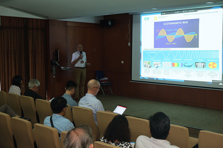 Tiếp nối chương trình, Trưởng Trung tâm Điều trị Đau – Bệnh viện FV, bác sĩ Louis Brasseur đã có bài giới thiệu tổng quan về kỹ thuật kích thích từ xuyên sọ (rTMS). Được phát triển từ thập niên 80 của thế kỷ trước, đến nay TMS đang được sử dụng như một công cụ hữu dụng, có thể chẩn đoán, dự phòng các bệnh lý tổn thương thần kinh, đồng thời cũng giúp điều trị các tổn thương này.