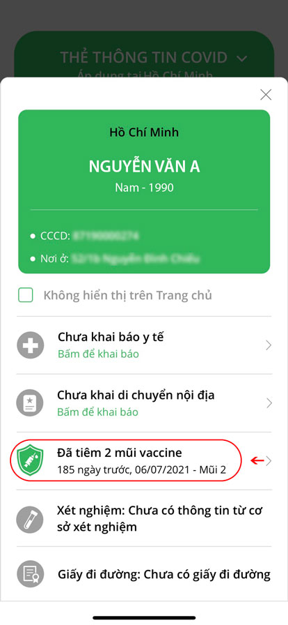 - Bước 2: Chọn dấu mũi tên “>” của dòng “Đã tiêm 2 mũi vaccine”.