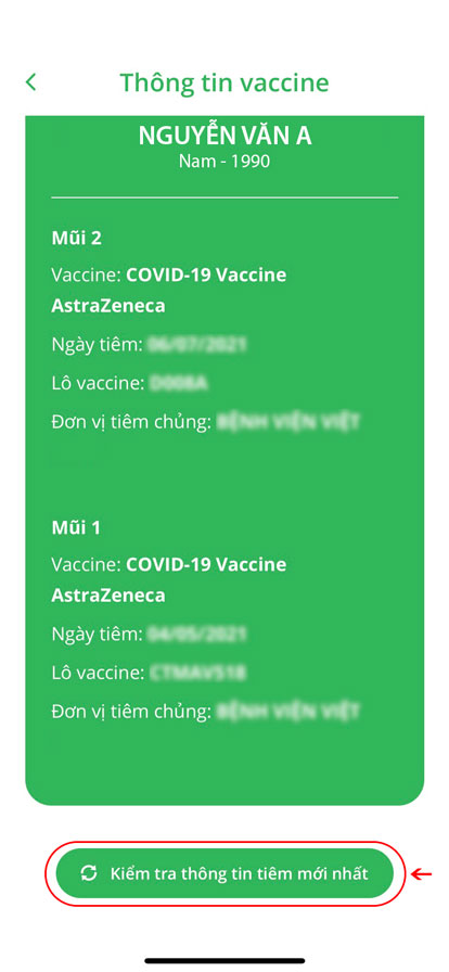 Trong trường hợp thông tin không hiển thị, bạn cần kiểm tra và đảm bảo cơ sở tiêm chủng đã cập nhật đầy đủ thông tin các mũi tiêm của cá nhân trên Cổng Thông tin Tiêm chủng Quốc gia. Tuy nhiên trong một số trường hợp ứng dụng vẫn chưa cập nhật, bạn có thể kiểm tra lại trong những ngày tiếp theo với cách thức tương tự.