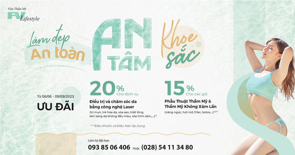 Đặc biệt, từ ngày 06/06/2023 – 09/09/2023, FV Lifestyle dành tặng khách hàng chương ưu đãi cực kì hấp dẫn lên đến 20% cho các dịch vụ:
