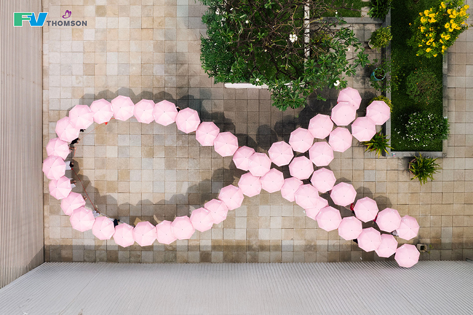 Sắc Nơ hồng từ những chiếc ô khẳng định FV luôn đồng hành cùng phụ nữ Việt Nam trong hành trình điều trị và phòng chống ung thư vú