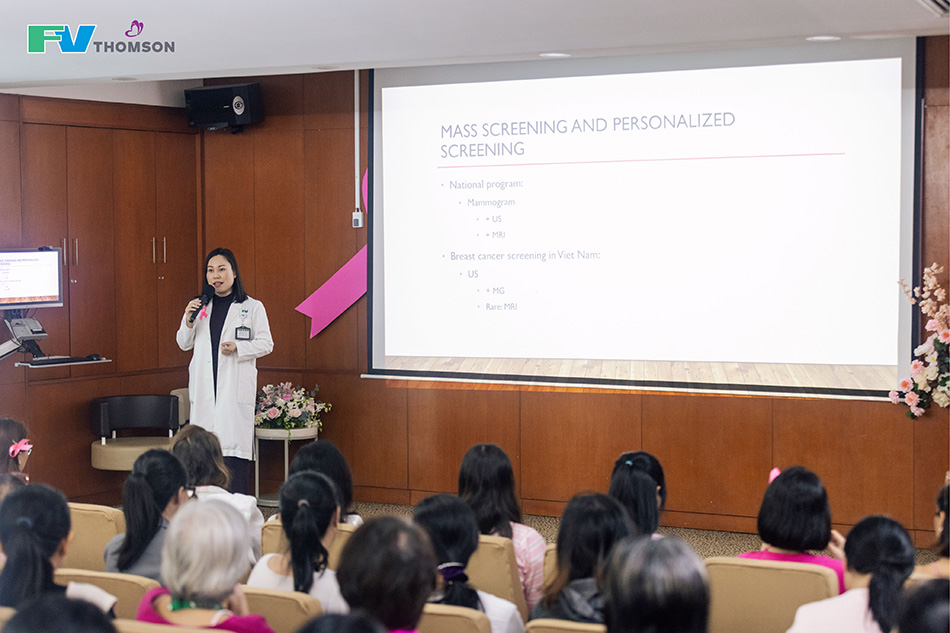 Bác sĩ Phùng Ngọc Thư mở đầu với câu chuyện về một bệnh nhân trung niên khỏe mạnh, chỉ nhờ tầm soát định kỳ mà phát hiện sớm khối u 4mm ở giai đoạn 0. Người phụ nữ ấy chỉ cần phẫu thuật bảo tồn, không cần hóa trị hay điều trị phức tạp, và nhanh chóng trở lại cuộc sống bình thường. “Đó là minh chứng rõ ràng nhất cho sức mạnh của tầm soát. Việc khám định kỳ không phải để sợ hãi, mà là để yêu thương bản thân và sống lâu hơn bên những người mình yêu,” bác sĩ Thư chia sẻ.