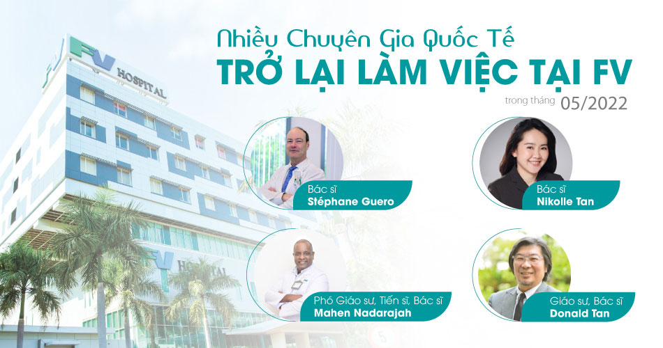 Sau một thời gian tạm hoãn do dịch COVID-19 làm ảnh hưởng đến quá trình hợp tác và đi lại, bắt đầu từ tháng 05/2022, nhiều chuyên gia hàng đầu thế giới sẽ trở lại làm việc tại FV, mang đến cho bệnh nhân nhiều cơ hội khám và chữa bệnh thành công, giúp phục hồi các chức năng bình thường của cơ thể.