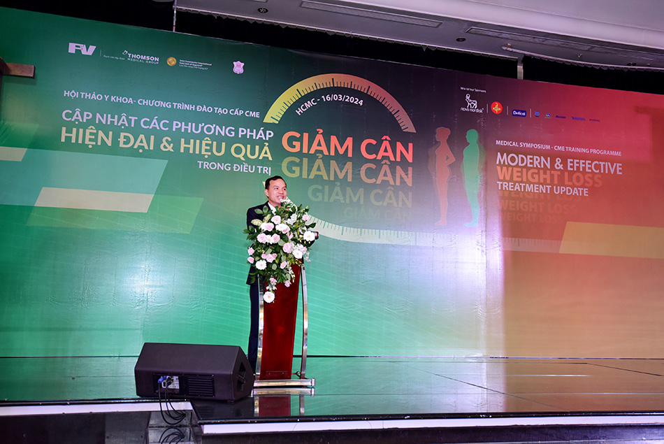 Mở đầu, Đại diện cho Đơn vị tổ chức, ThS.BS Vũ Trường Sơn (Phó Giám đốc Y khoa – Bệnh Viện FV), đã gửi lời cảm ơn đến các diễn giả, các đơn vị tài trợ và các khách mời tham dự hội thảo. Bác sĩ Sơn chia sẻ: “Bệnh lý thừa cân, béo phì đang ngày một báo động. Thông qua hội thảo này, tôi hy vọng các đồng nghiệp sẽ có được những phương án hợp tác toàn diện hơn, nhằm giúp bệnh nhân đạt được hiệu quả điều trị mong muốn”. Buổi hội thảo diễn ra sau đó với sự điều phối từ chủ tọa đoàn gồm TS.BS Lê Quan Anh Tuấn (Trưởng Khoa Ngoại Gan Mật Tụy – Bệnh viện Đại học Y Dược TP.HCM), TS.BS. Kallayanee Porngometkul (Bệnh Viện Quốc Tế Yanhee, Thái Lan) và ThS.BS. Vũ Trường Sơn.