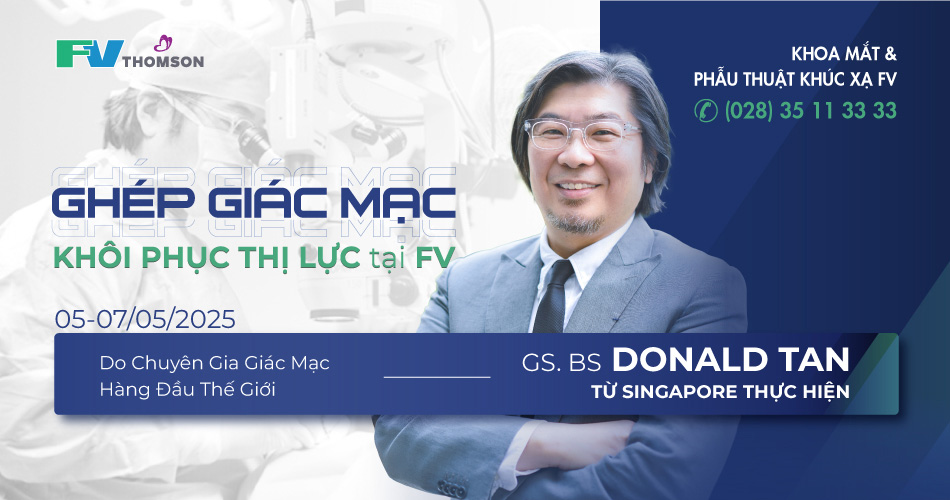 Nhằm mang đến cơ hội chữa trị các bệnh lý về giác mạc, từ ngày 05/05 – 07/05/2025, Giáo sư – Bác sĩ Donald Tan – Nguyên Chủ tịch Hiệp hội Giác mạc Thế giới đến từ Singapore, sẽ trực tiếp thăm khám và phẫu thuật ghép giác mạc cho bệnh nhân tại khoa Mắt – Bệnh viện FV.