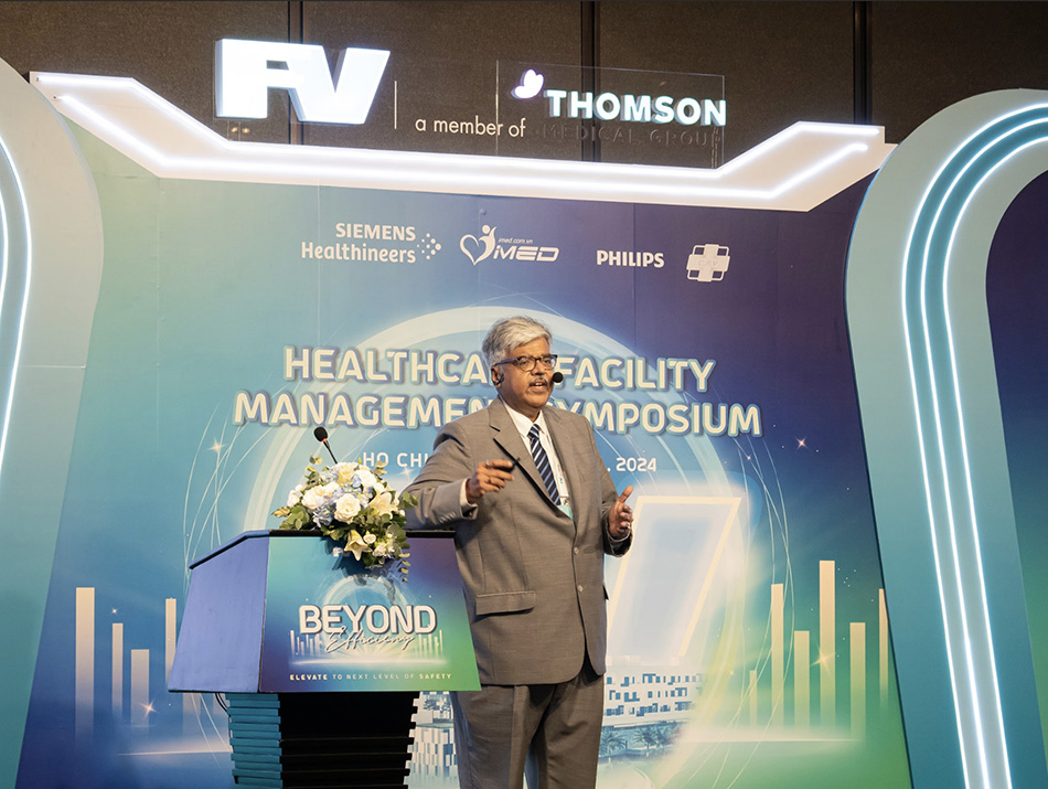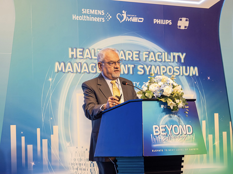 Tiếp nối, ông Dhanraj Chandriani, nhà tư vấn y tế dày dặn với hơn 40 năm kinh nghiệm, đã trình bày về vai trò và nhiệm vụ của các nhà quản lý cơ sở chăm sóc sức khỏe, đặc biệt trong bối cảnh công nghệ rất phát triển như hiện nay. Những con số, ví dụ của ông đã nhấn mạnh vai trò quan trọng của việc vận hành bảo trì bệnh viện với chi phí thấp và hiệu suất tối ưu. Từ đó, ông Chandriani cho rằng các nhà quản lý cơ sở y tế không chỉ cần đảm bảo vận hành hạ tầng hiệu quả, tiết kiệm chi phí, mà còn phải quan tâm đến an toàn và trải nghiệm sống của những con người bên trong.