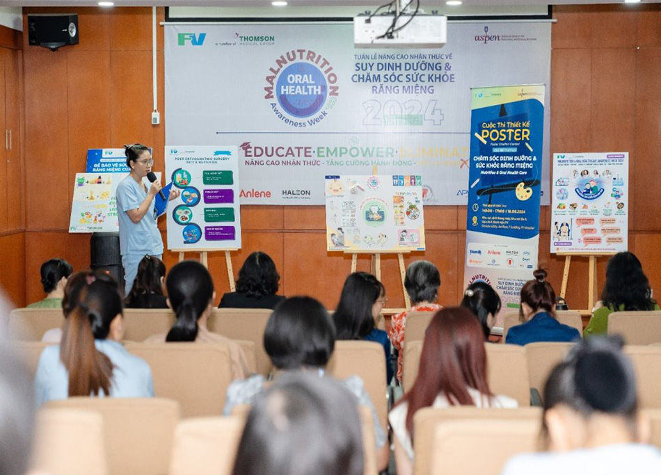 Tuần lễ Nâng cao Nhận thức về Suy Dinh dưỡng và Chăm sóc Sức khỏe Răng miệng 2024 diễn ra từ ngày 16 đến 20 tháng 9 năm 2024 tại Bệnh viện FV, thu hút sự tham gia của đông đảo của nhân viên bệnh viện, bệnh nhân và thân nhân. Đặc biệt FV vinh dự là đại sứ (Ambassador) đầu tiên và duy nhất hiện nay tại Việt Nam đồng hành cùng Tuần lễ Nhận thức về Suy dinh dưỡng do ASPEN (American Society for Parenteral and Enteral Nutrition) tổ chức.