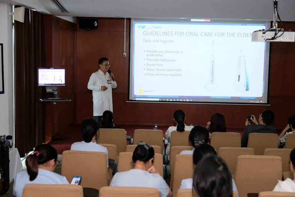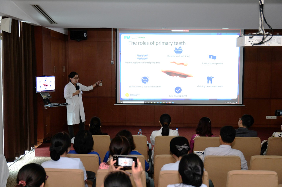 Trong phần đào tạo về chăm sóc răng miệng, các diễn giả đến từ Khoa Nha & Phẫu thuật hàm mặt đã chia sẻ một bức tranh tổng thể về điều trị, chăm sóc và cả làm đẹp cho răng. Các bác sĩ đều lưu ý việc duy trì chế độ ăn giàu vitamin và khoáng chất, thường xuyên thăm khám định kỳ và trao đổi với bác sĩ, nha sĩ khi có bất thường về răng, là những yếu tố quan trọng để bảo vệ sức khỏe răng miệng cho cả người lớn và trẻ em.