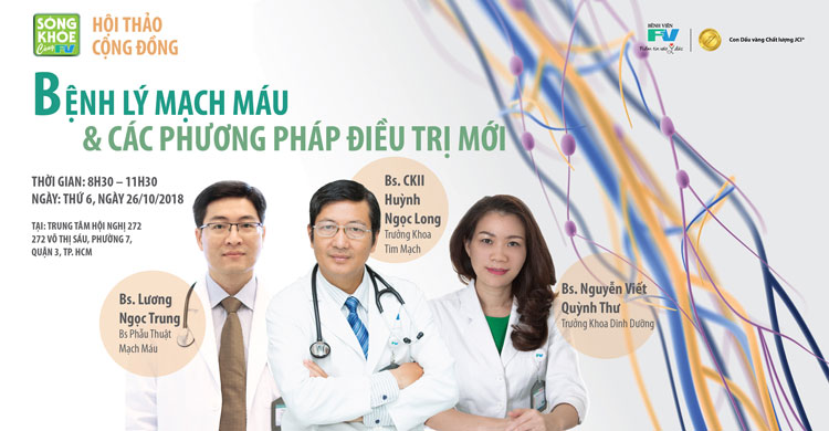 Bệnh lý mạch máu bao gồm các bệnh lý mạch vành, xơ vữa động mạch, huyết khối tĩnh mạch, phình động mạch, hẹp động mạch, suy giãn tĩnh mạch…nếu không được chữa trị sẽ có thể gây biến chứng như nhồi máu cơ tim, tắc nghẽn mạch máu dẫn đến tàn phế hoặc tử vong. Tuy nhiên, nếu được phát hiện và điều trị kịp thời thì bệnh lý này có thể được chữa khỏi hoàn toàn. Với mong muốn giúp mọi người có thêm những kiến thức về bệnh lý cũng như phương pháp điều trị căn bệnh này, Bệnh viện FV tổ chức Hội thảo với chủ đề Bệnh Lý Mạch Máu Và Các Phương Pháp Điều Trị Mới vào lúc 8h30 – 11h30, ngày 26/10/2018 tại Trung tâm Hội nghị 272 Võ Thị Sáu, phường 7, Quận 3, TP. HCM, với sự góp mặt của các diễn giả là bác sĩ cấp cao đang công tác tại Bệnh viện FV.
