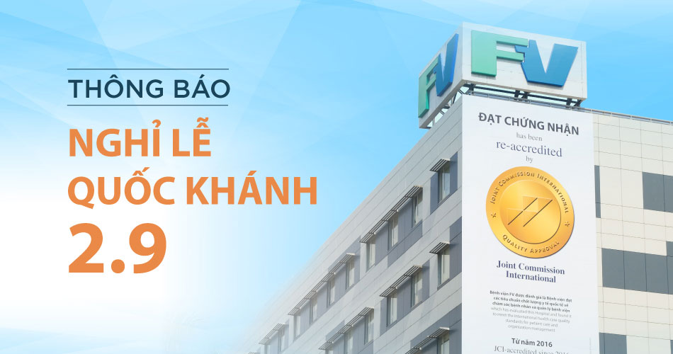 Khu khám bệnh Ngoại trú Bệnh viện FV sẽ nghỉ từ Thứ Sáu, ngày 02-09-2022 đến hết Thứ Bảy, ngày 03-09-2022 và hoạt động trở lại vào ngày Thứ Hai, 05-09-2022.