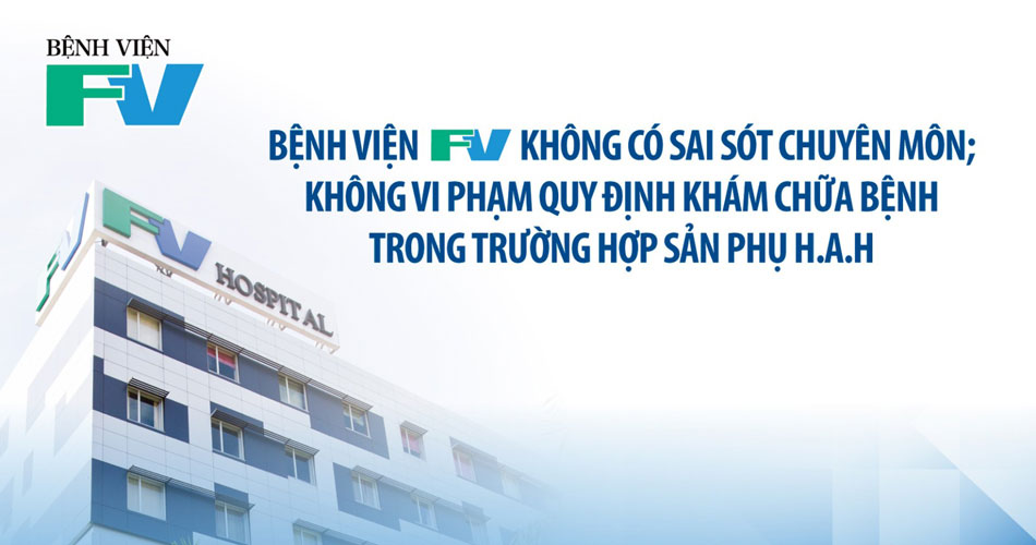 Như vậy, có thể khẳng định Bệnh viện FV không có vi phạm quy định khám chữa bệnh, không có sai sót chuyên môn trong quá trình chăm sóc bà H.A.H trong quá trình bà sinh con tại đây.