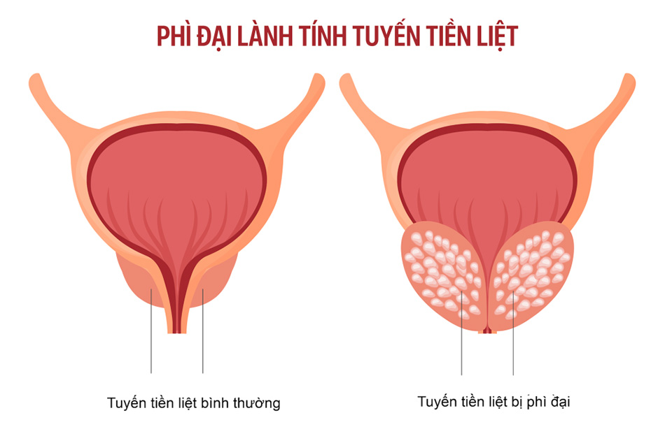Minh họa tuyến tiền liệt bình thường và khi bị bướu lành tính