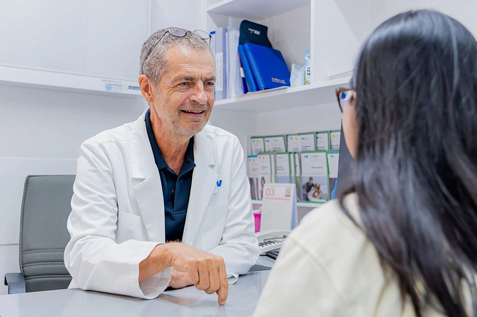 TS.BS Robert Francois Marie Riche tư vấn cho bệnh nhân tại Bệnh viện FV. Ảnh: FV