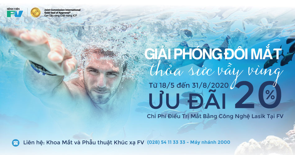 Từ 18/05/2020 – 31/08/2020, khoa Mắt và Phẫu thuật Khúc xạ – Bệnh viện FV dành tặng ưu đãi lên đến 20% cho các dịch vụ phẫu thuật Lasik truyền thống và Femto-second Lasik hoặc kết hợp kĩ thuật mới Crosslinking.