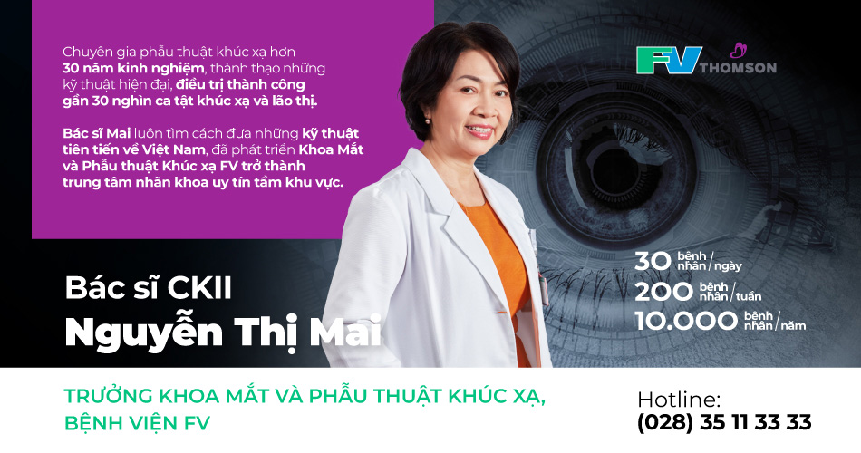 Vui lòng liên hệ Khoa Mắt & Phẫu thuật Khúc xạ – Bệnh viện FV qua số (028) 35 11 33 33 – máy nhánh 2000 để được tư vấn và lựa chọn phương pháp phù hợp nhất cho đôi mắt của bạn.
