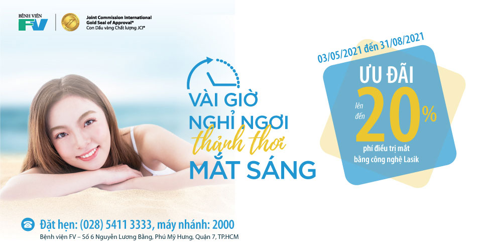 Vui lòng gọi khoa Mắt và phẫu thuật khúc xạ bệnh viện FV số (028) 35 11 33 33, máy nhánh 2000 để đặt hẹn ngay và nhận được ưu đãi.