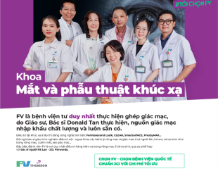 Dịch vụ phẫu thuật cấy ghép giác mạc tại Bệnh viện FV với nguồn giác mạc nhập khẩu, đội ngũ quốc tế, phục hồi nhanh, an toàn, chuẩn JCI.